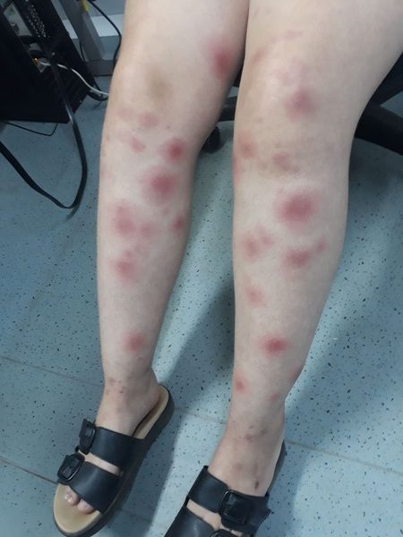 Mulher, 22 anos, sem comorbidades, procura atendimento referindo surgimento há seis dias de lesões eritematosas e dolorosas na região da perna e joelhos. Lesões tiveram aumento gradual e leve intensificação da cor, negando saída de secreção ou traumas locais prévios.