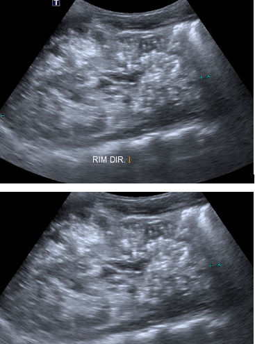 Lactente de um ano, sexo masculino, sem diagnóstico definitivo, realizou ultrassonografia de vias urinárias para avaliação de “rins aumentados” observado na ultrassonografia obstétrica, sem seguimento posterior. Paciente em acompanhamento recente com nefrologia, evoluindo com piora da função renal.